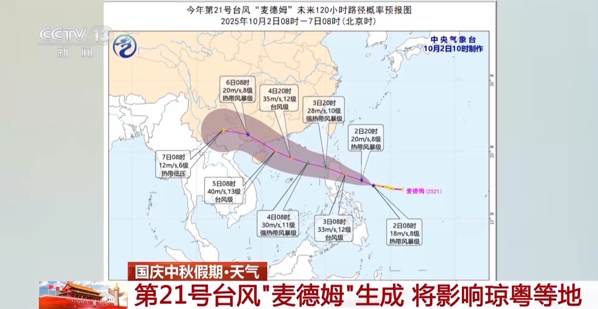 第21号台风“麦德姆”将影响华南地区及南海